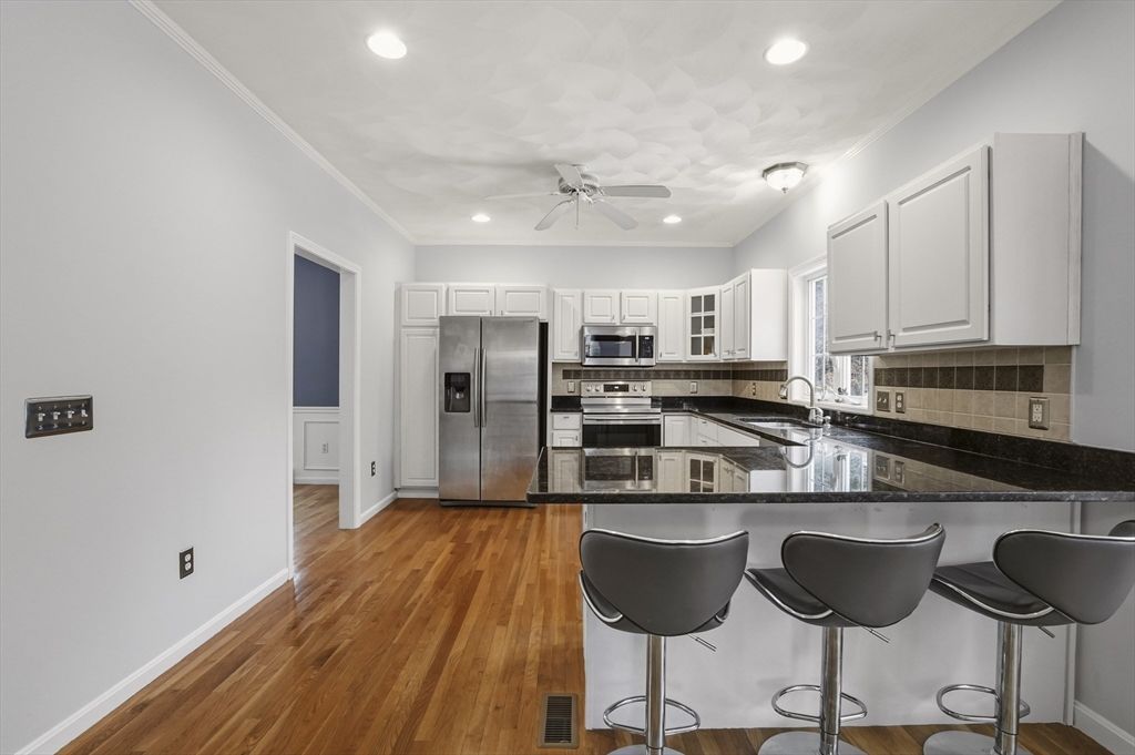 Kitchen: Flooring - Hardwood, Countertops - Stone/Granite/Solid, Breakfast Bar / Nook, Open Floorplan, Recessed Lighting, Stainless Steel Appliances, Peninsula