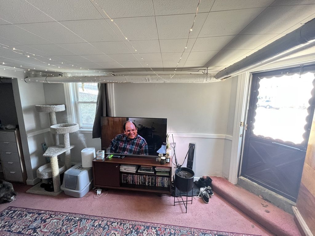 Davis Square. Closest train = Davis Square (Red Line). Studio/1 bath (garden level). Shared rear patio. Coin-op laundry. Street parking with City permit.