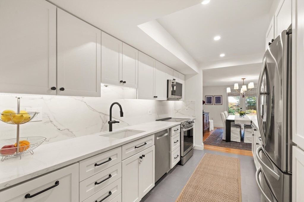 Beautiful and light-filled 3-story townhouse offering nearly 3,700 sq.ft. in a premier location across from scenic Patton Park and in the heart of Hamiltons downtown near the MBTA station, restaurants, shops, and top-rated H-W schools. Designed for comfort and entertaining, this home features a sleek white shaker kitchen with quartz countertops, stainless steel appliances, and ample cabinetry. The large living room showcases a wood-burning stone fireplace and cathedral ceiling opening to a sun-filled solarium overlooking manicured grounds. A cozy sitting room, powder room, and formal dining area complete the main level. Upstairs, the primary suite offers soaring ceilings, a beautifully updated en-suite bathroom, and private balcony. Two additional generously sized bedrooms share a renovated bath, while a versatile bonus room and loft occupy the third floor. Enjoy central A/C, hardwood floors, an attached two-car garage, and a private patio for outdoor relaxation.
