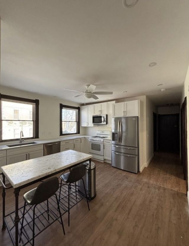 An exceptional residential opportunity awaits at 53 Barclay St U:1, Worcester, MA, United States. This property presents a refined living environment for those seeking a distinguished residence for lease. The expansive living area encompasses 1350 square feet, providing generous dimensions for personal comfort and refined entertaining. This substantial space offers considerable flexibility for various arrangements, fostering an atmosphere of ease and sophistication within the residence. This residence features three well-proportioned bedrooms, each designed to provide a private sanctuary for rest and rejuvenation. These individual spaces offer an inviting retreat, promoting tranquility and personal comfort. A meticulously appointed full bathroom serves the residence, offering a serene and functional space designed for daily routines and personal care. Its thoughtful configuration,. kitchen was updated includes marble island with seating, stainless steel Appliances, inside laundry room