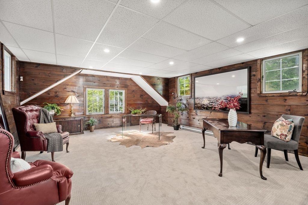This classic single-family Colonial in Newton Centres coveted Old Oak Hill enclave overlooks Hartmann Park and is set on beautifully landscaped grounds. The main level offers a gracious fireplaced living room with pine paneling, a formal dining room rich in wood detailing, a bright and inviting sunroom, a glass-enclosed sun porch, and a comfortable den ideal for everyday living. The eat-in kitchen enjoys peaceful backyard views and features custom cabinetry, a convenient mudroom, and a back staircase to the second floor. Upstairs, the freshly painted primary suite boasts refinished hardwood floors, an ensuite bath, ample closet space, and tranquil park views. Three additional bedrooms??each with a walk-in closet??and a full bath complete the second level. A detached two-car garage includes a built-in storage shed and a finished bonus space above, perfect for a home office, studio, or gym.