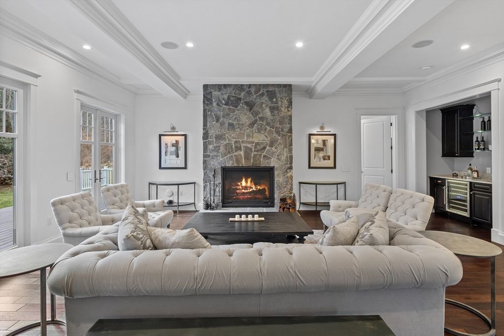 Living Room: Flooring - Hardwood, Window(s) - Picture, French Doors, Wet Bar, Cable Hookup, Recessed Lighting, Lighting - Pendant, Crown Molding, Decorative Molding